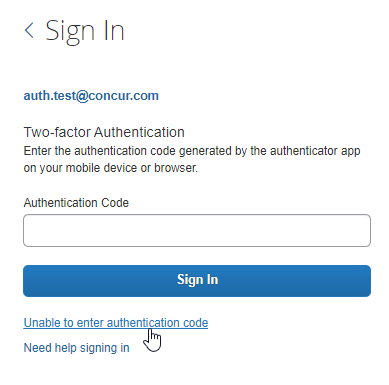 "Unable to enter authentication code". Click "Send" for SAP Concur to send you the link.